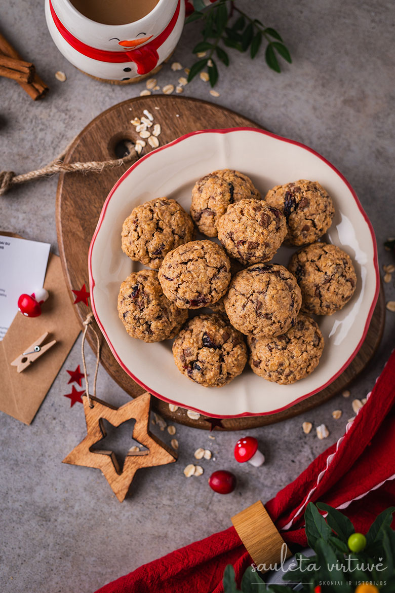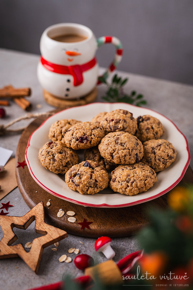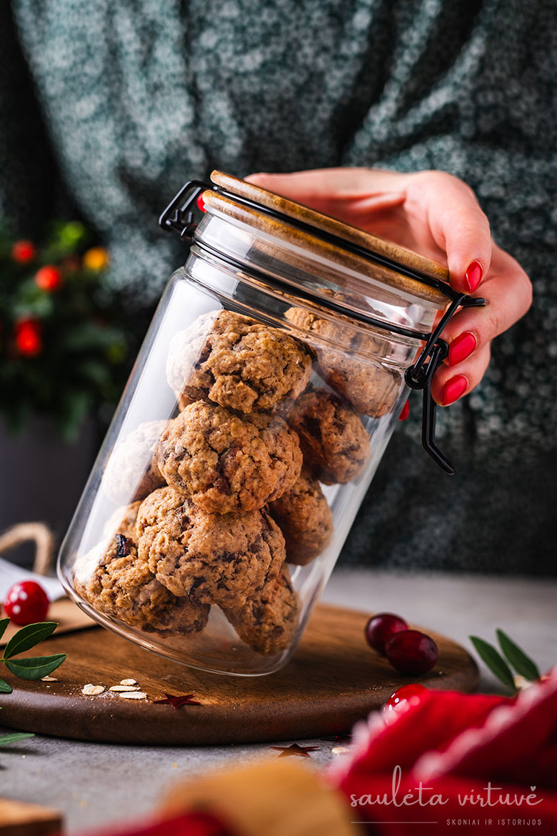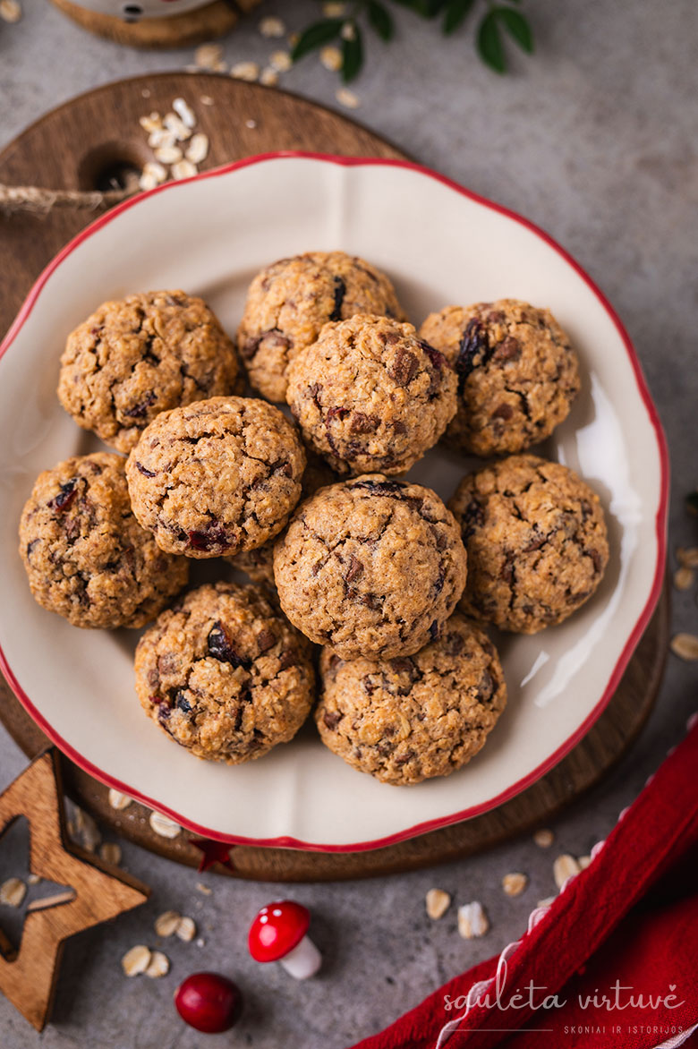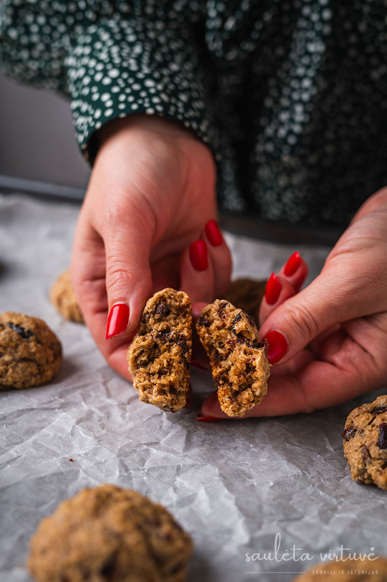 Avižiniai sausainiai su šokoladu ir spanguolėmis