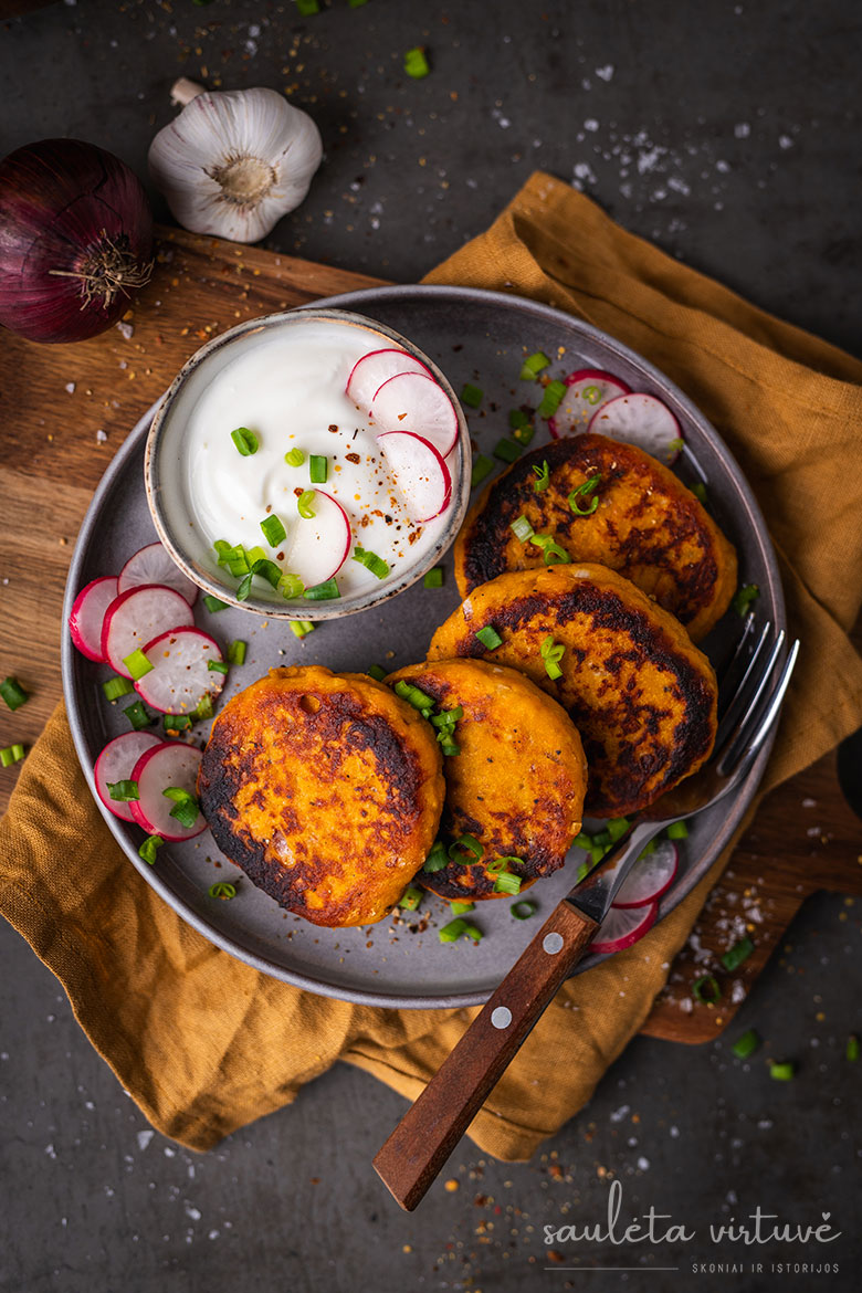 Porcijos: 1 soti porcija (4-5 kepsneliai) Paruošimo laikas: 20 min. + batato kepimas