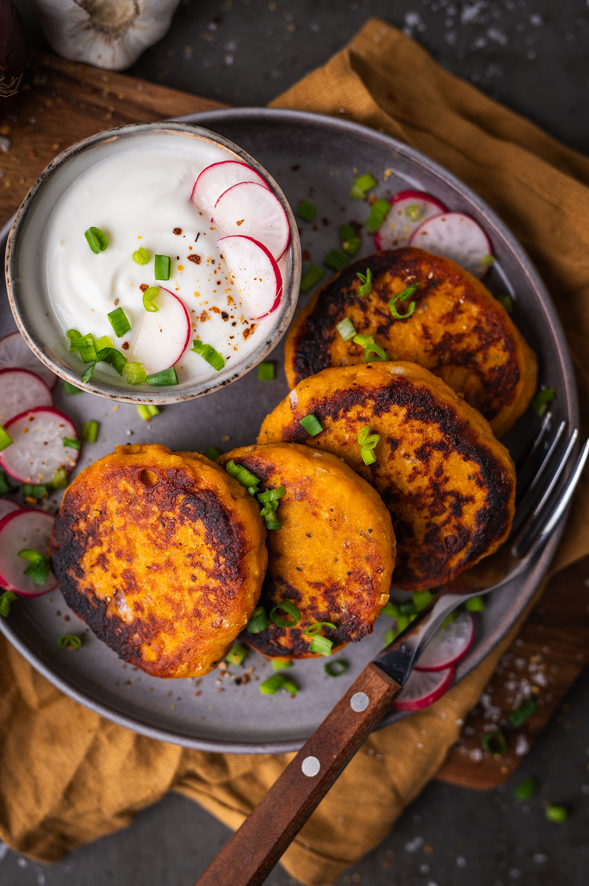 Neprisimenu, kada paskutinįkart gaminau pietus ar vakarienę, kuriems prireiktų daugiau nei pusvalandžio*. Taip, žinau, vien batatai kepa ilgiau nei tiek, bet pašovus jį į orkaitę ar karšto oro gruzdintuvę, galima užsiimti savo reikalais. O tada – greit sutrinti, sumaišyti, iškepti ir valgyti, šakute gnybiant po kąsnelį ir gausiai mirkant į graikišką jogurtą. Labai paprasta, greita, o svarbiausia – labai skanu!