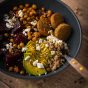 Bolivinės balandos, burokėlių ir avinžirnių dubenėlis