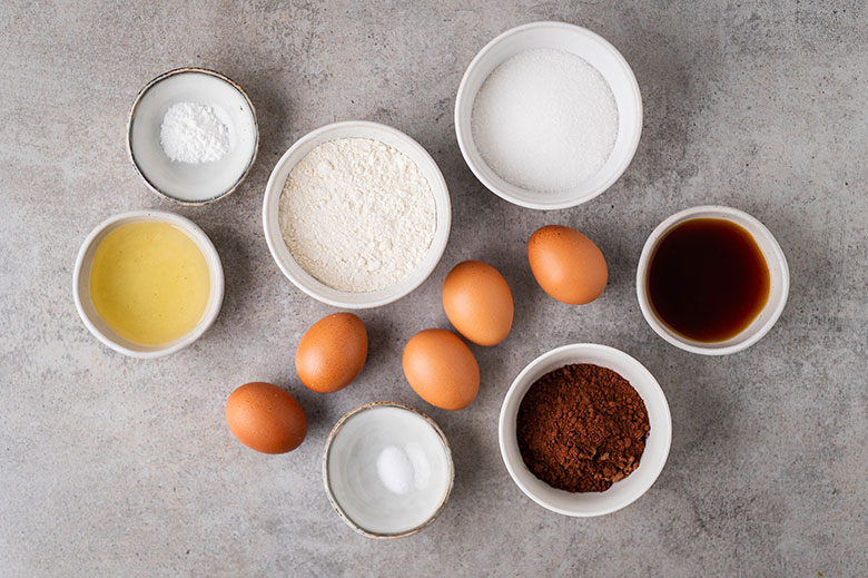 1. Iškepkite biskvitą. Paruoškite reikalingus ingredientus. Atkreipkite dėmesį, kad prireiks dviejų biskvitų, tad produktų taip pat prireiks dvigubai daugiau. Rekomenduoju tešlą biskvitams maišyti ir kepti atskirai, per du kartus.