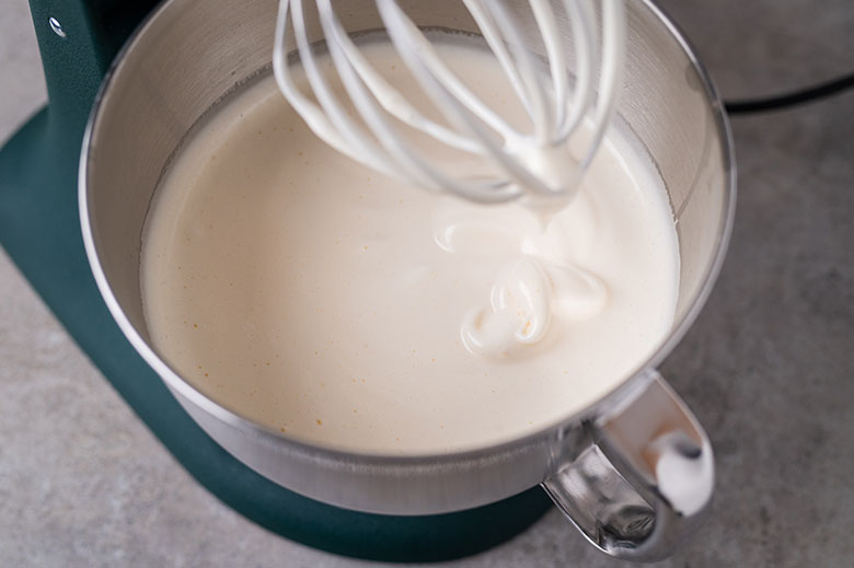 13. Supilkite grietinėlę ir plakite, kol gausite tvirtą kremą. Neperplakite!