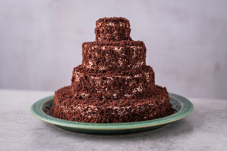 - Atsižvelgiant į tai, kad tortas yra nestandartinės formos ir yra surenkamas be apsauginio konditerinio žiedo, turite naudoti tvirtą kremą, kuris dėl sluoksnių gausos neišbėgtų pro šalis. Maskarponės kremas čia puikiai tiks, tik atidžiai laikykitės recepte nurodytų proporcijų.