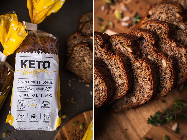 1 kepalėlio (340 g) „KETO lengvai“ duonos su sėklomis