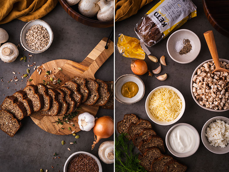 Daug dalykų per tuos metus pasikeitė, bet karšti sumuštiniai su pievagrybiais man vis dar tokie pat gardūs. Šįkart – sutepti ir užkepti ant „KETO lengvai“ duonos su sėklomis. Šią duoną kepa „Biržų duona“ – ji gausi sėklų ir baltymų (sudėtyje yra varškės!), be pridėtinio cukraus ar cukraus pakaitalų, be kvietinių miltų. Skonis, tekstūra ir aromatas gundo teptis dar vieną sumuštinį, čiupti dar vieną riekelę prie dubenėlio sriubos ar – prikepti pilną skardą karštų sumuštinių.
