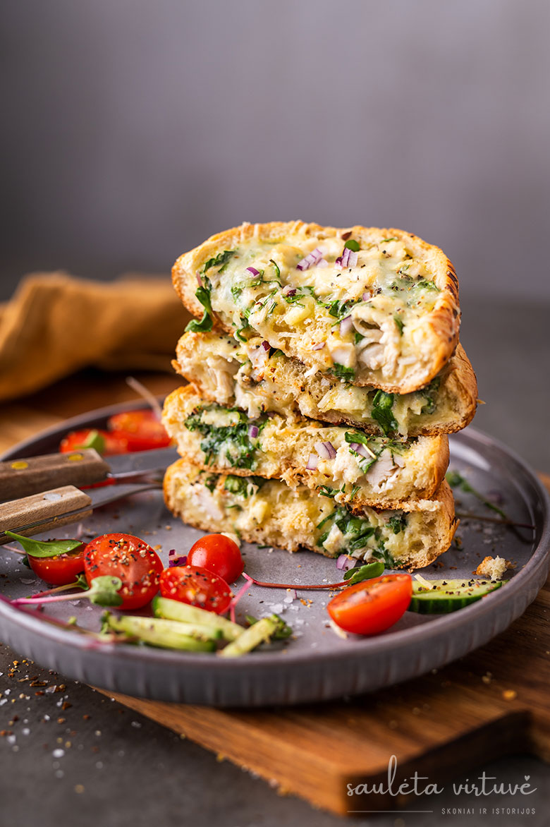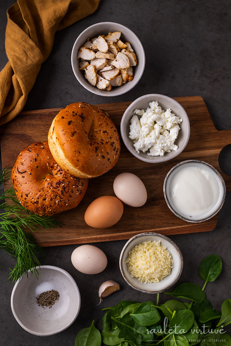 - norėjau, kad receptas būtų ne tik skanus, bet ir maistingas, gausus baltymų, todėl į kiaušinių plakinį įmaišiau smulkintos keptos vištienos, varškės, jogurto, sūrio,