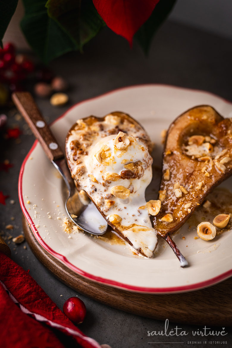 Keptos kriaušės su ledais ir karamele