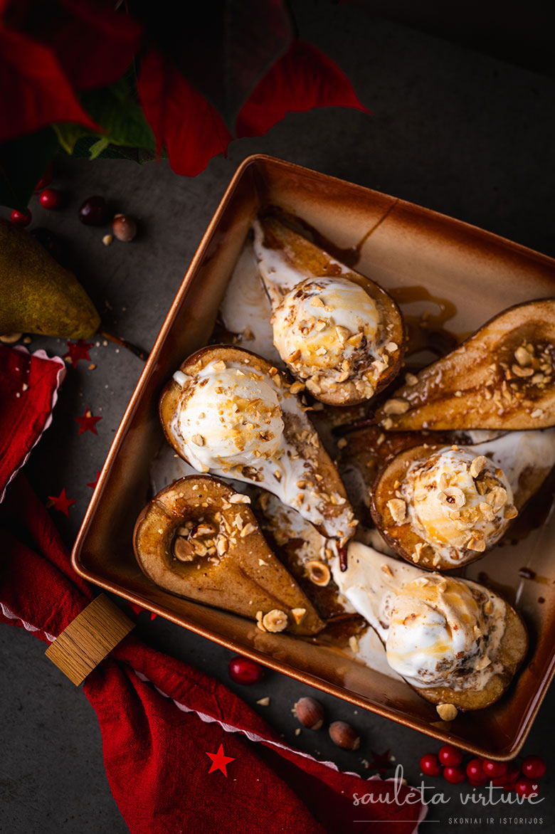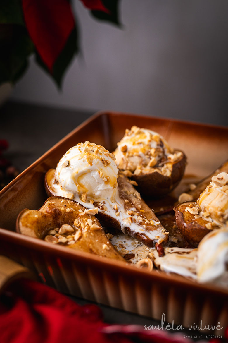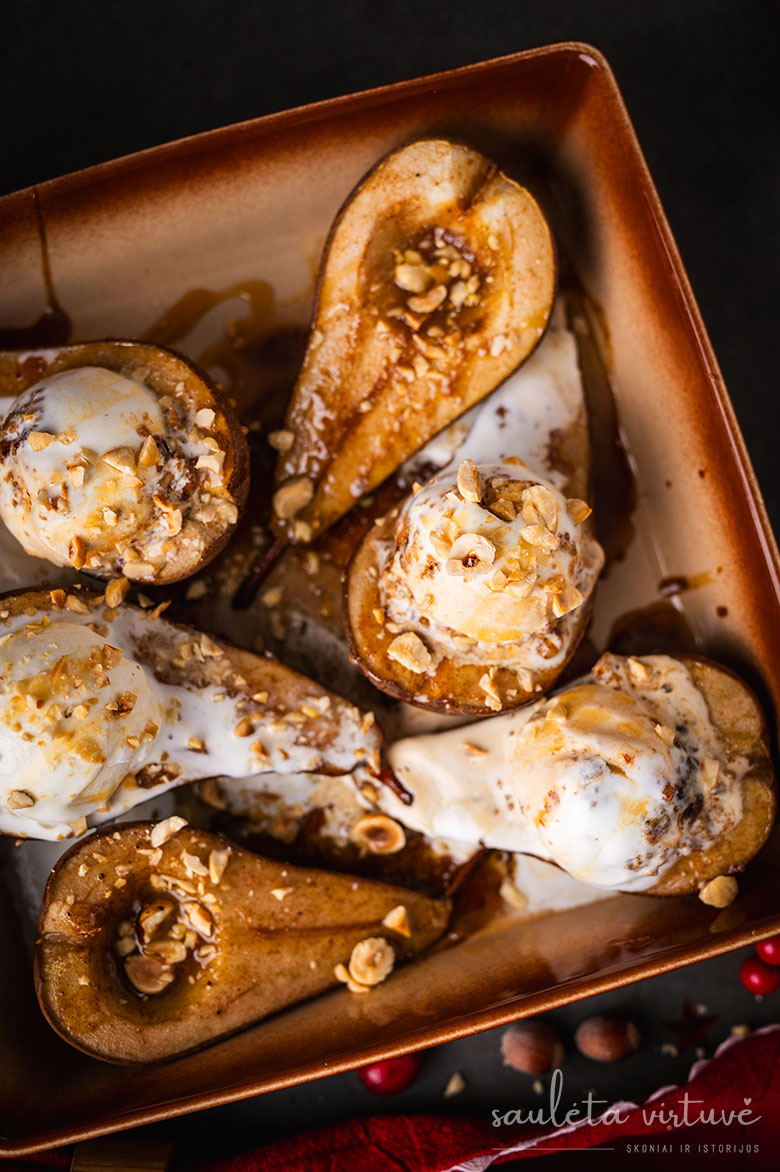 Keptos kriaušės su ledais ir karamele