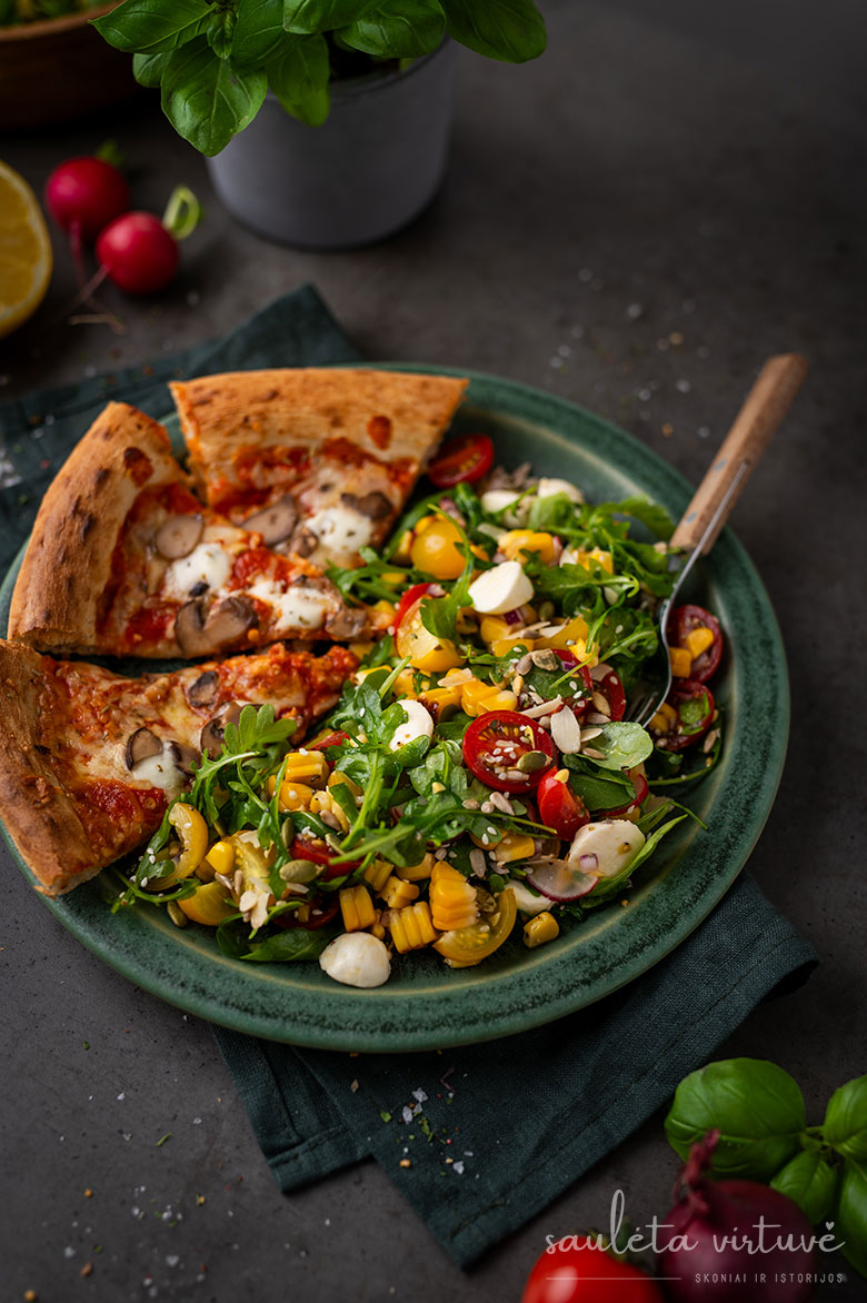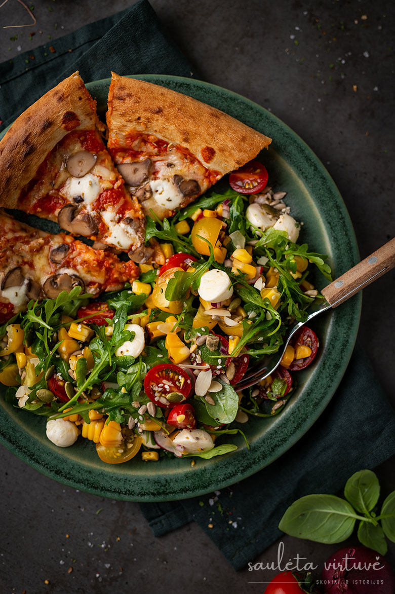 Mėgstu picą ir su džiaugsmu pasilepinu, tik jau seniai išmokau taisyklę kaip dukart du: prieš picą – salotos! Šitaip gauname daugiau skaidulų, greičiau pasisotiname, o sotumo jausmas išlieka ilgiau. O jei salotos skanios, tai ir malonumas – dvigubas!