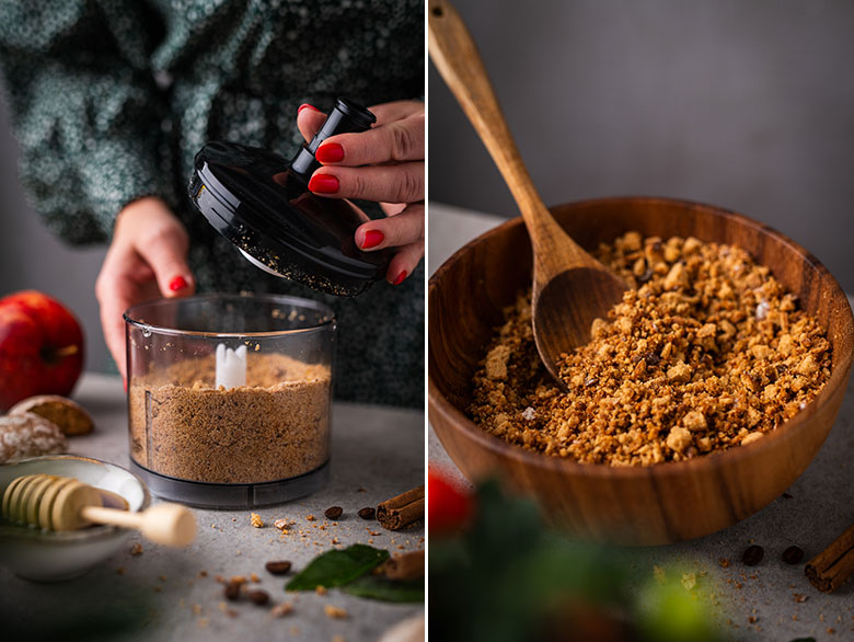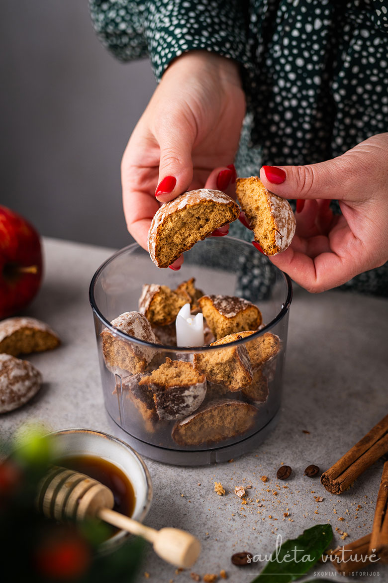 4. Paruoškite meduolius. Susmulkinkite juos maisto smulkintuvu. Gautus trupinius sumaišykite su kava.