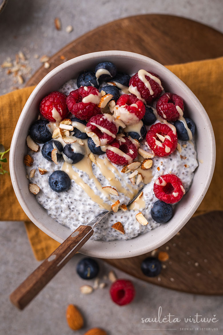 - galite patiekti ne dubenėlyje, o sluoksniuoti stiklainyje – puikiai tiks neštis į darbą, parką ar bet kur kitur,