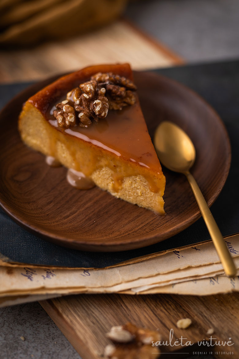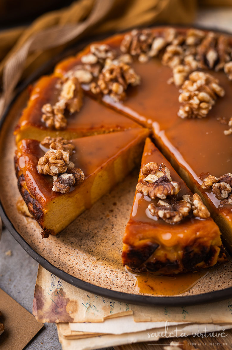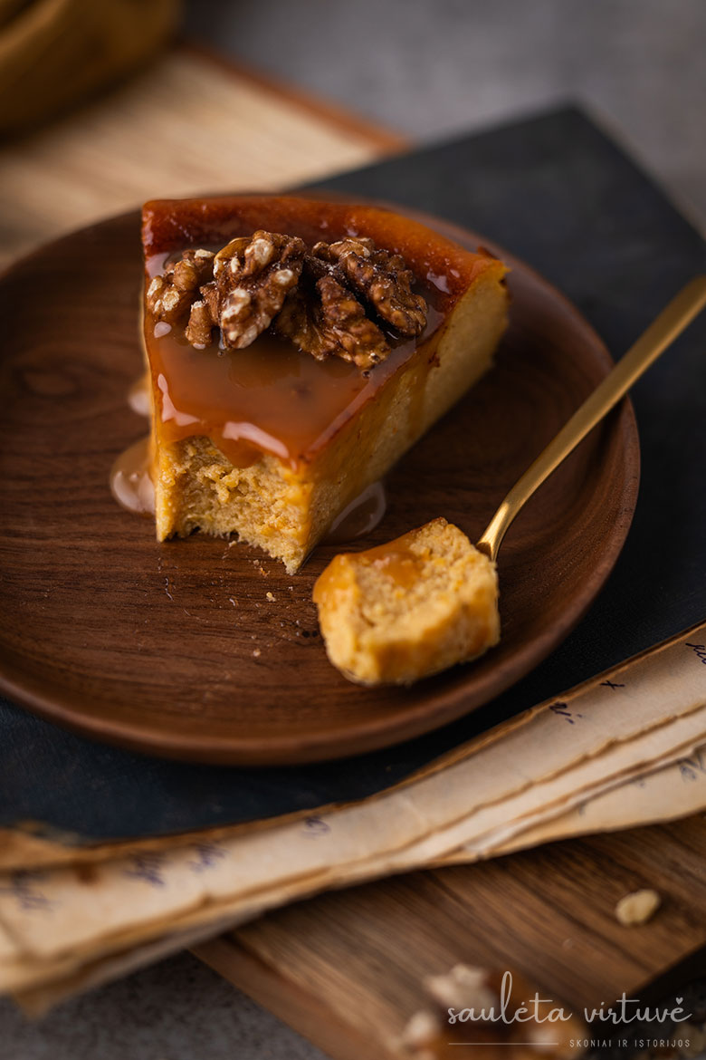 • Pyragą galite gardinti plakta grietinėle, karamelės padažu ar uogomis – rinkitės pagal sezoną ir savo skonį.