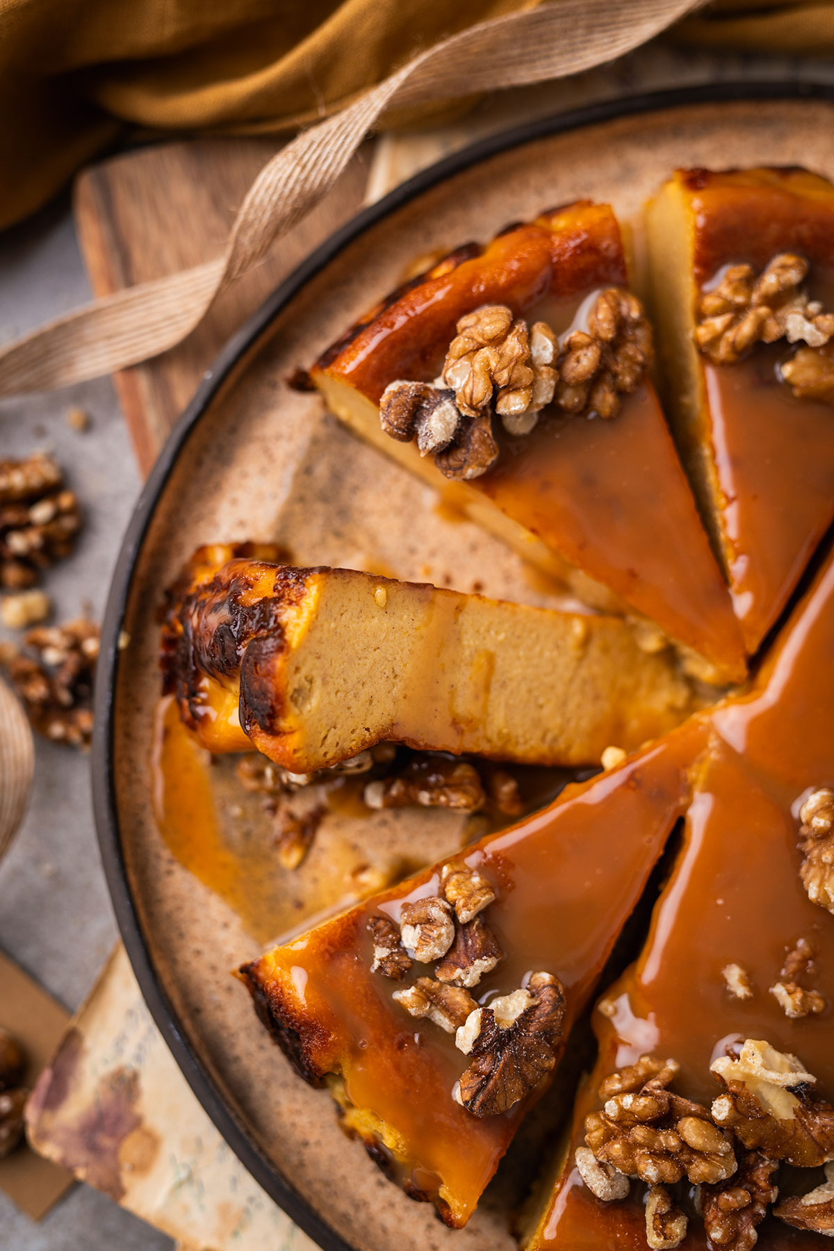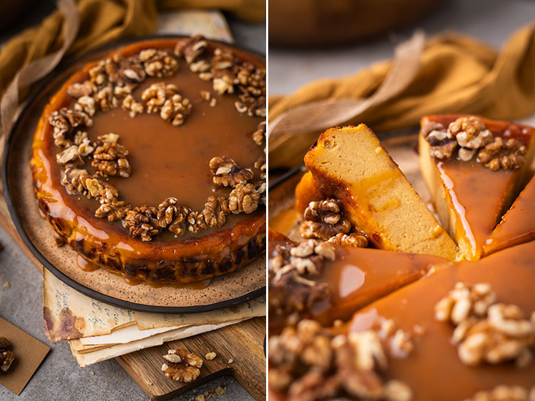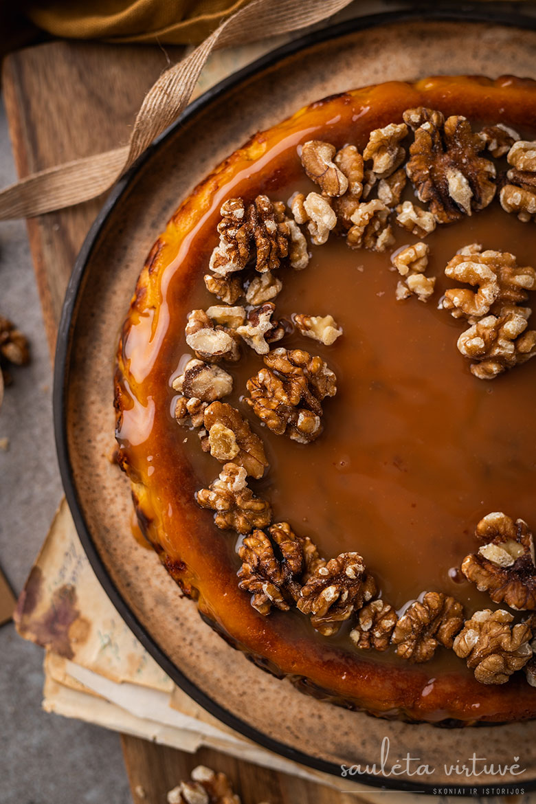 Šis baskų sūrio pyragas – beveik klasikinis, tik įkvėptas rudens. Į kreminio sūrio masę įmaišykite saldžiai kvepiančių moliūgų tyrės, pagardinkite cinamonu ir imbieru. Jie pyragui suteiks ne tik šiltą, gelsvą spalvą, bet ir skonį, tiesiog sukurtą rudens dienoms – jaukų, švelnų, maloniai saldų. Galbūt nė neįspėsite, kad tasai slaptas ingredientas yra moliūgai, bet, patikėkite, – jie pyragui suteikia labai daug!