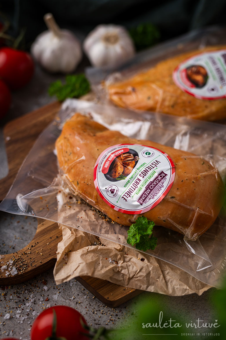 - karštai rūkyta vištienos krūtinėlė duos tą sodrų, dūmo skonį – labai gardžią savo asortimente turi „Rokiškio mėsinė“;
