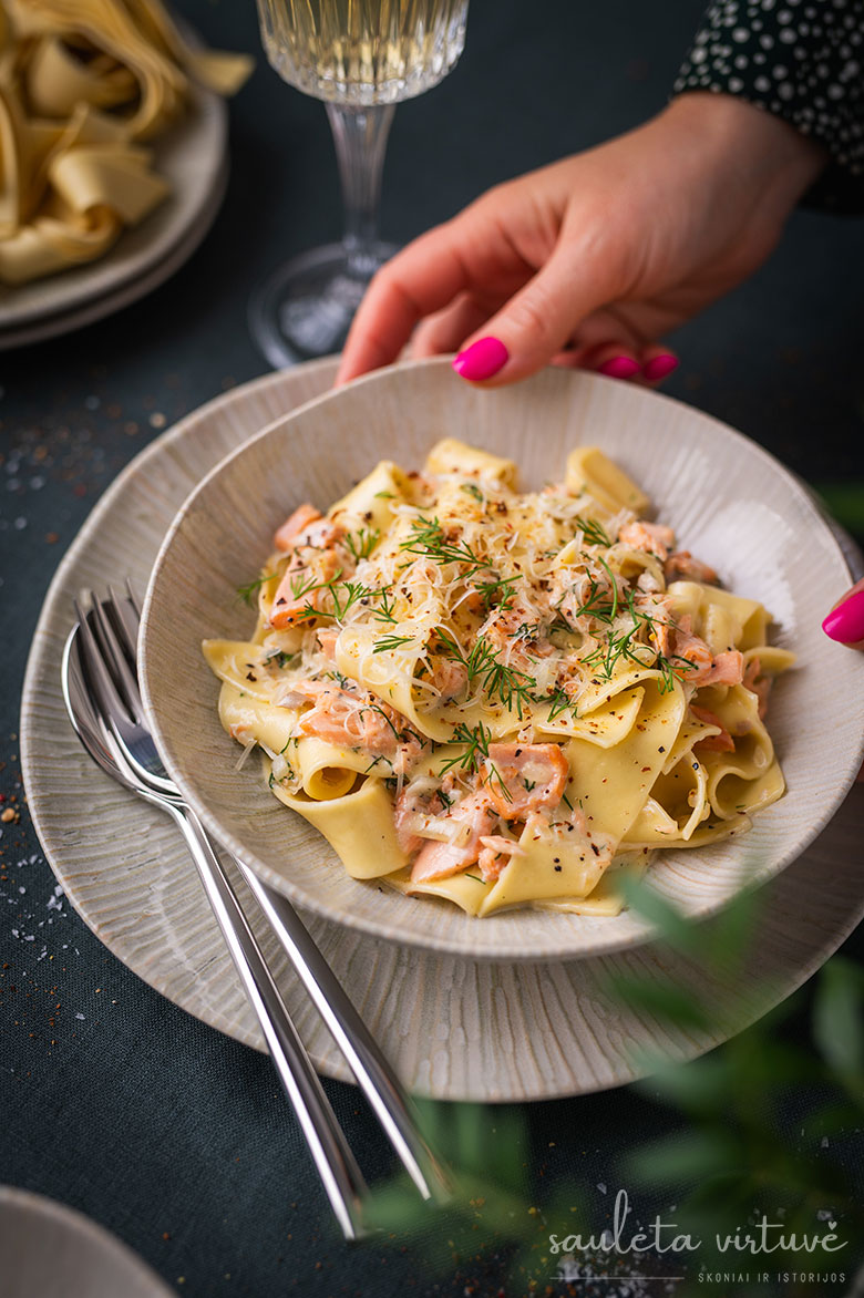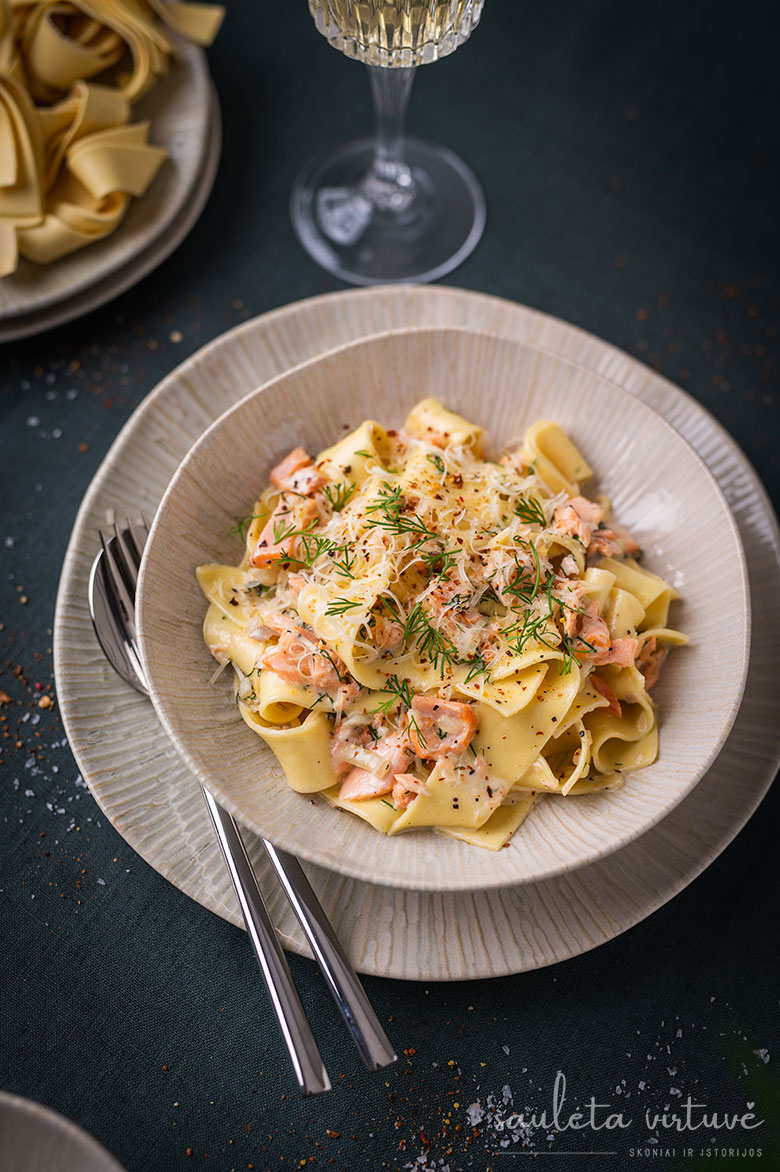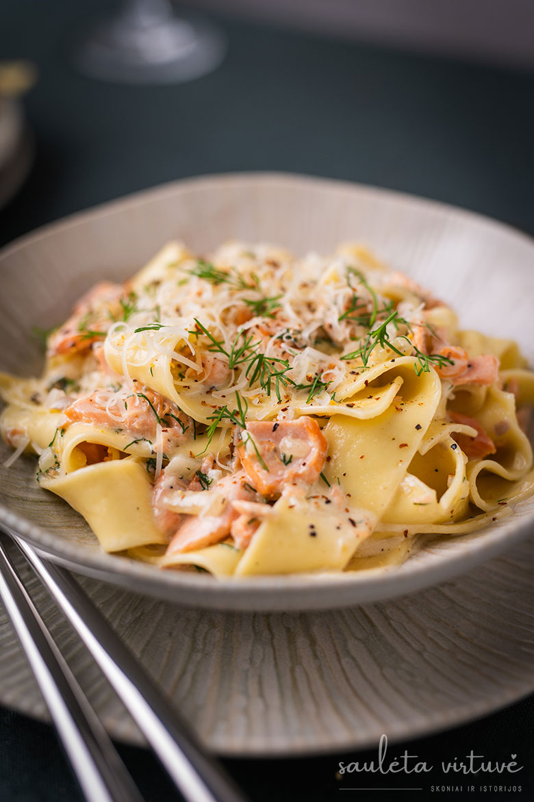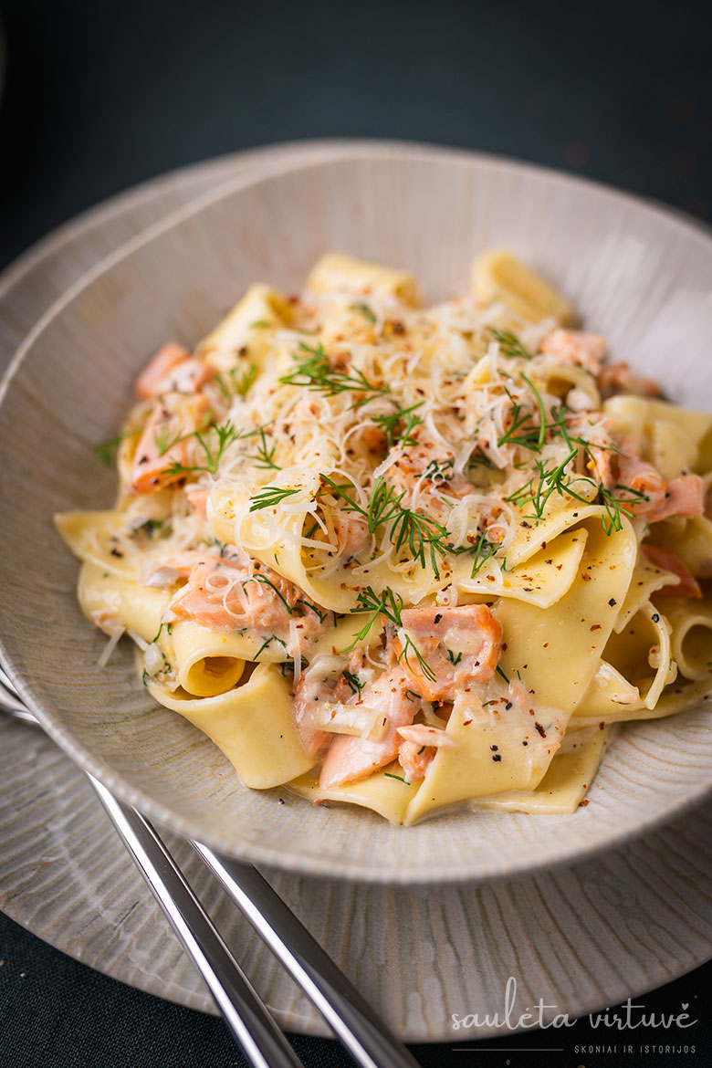 Pasta su lašišos ir grietinėlės padažu