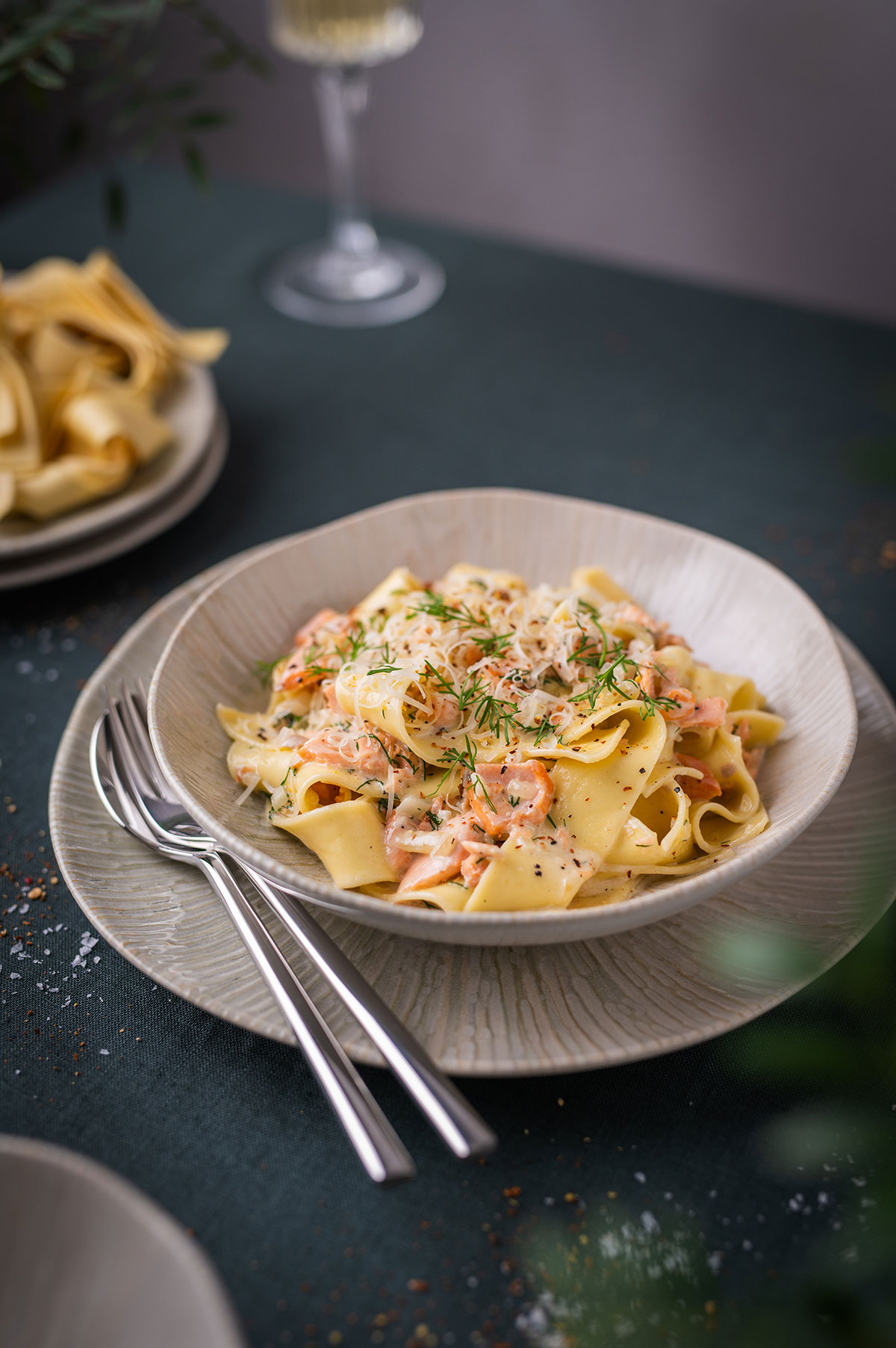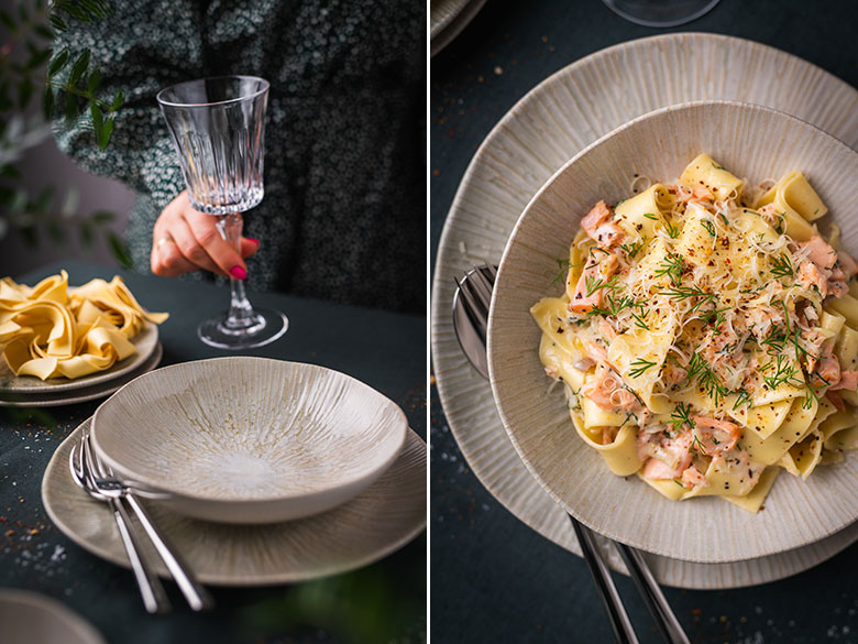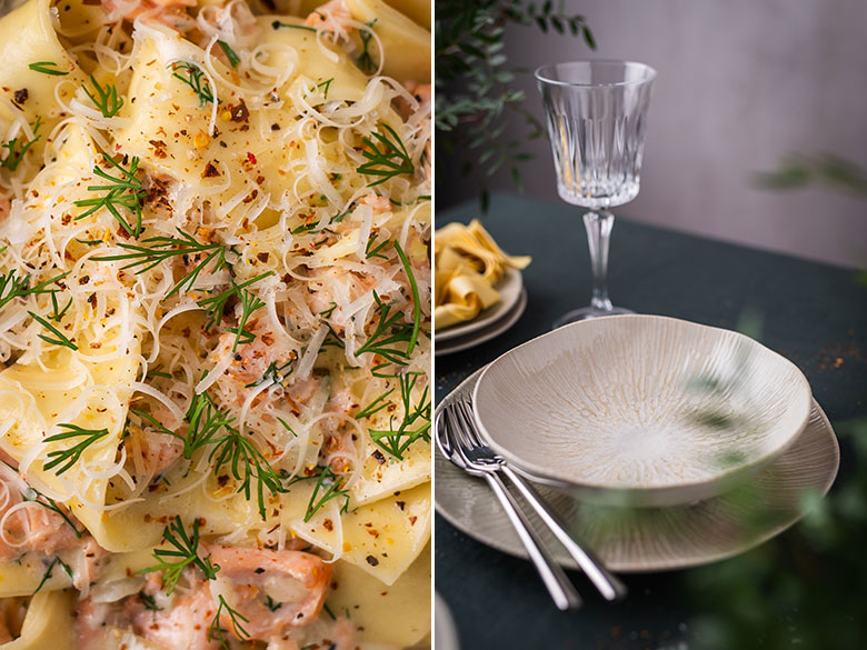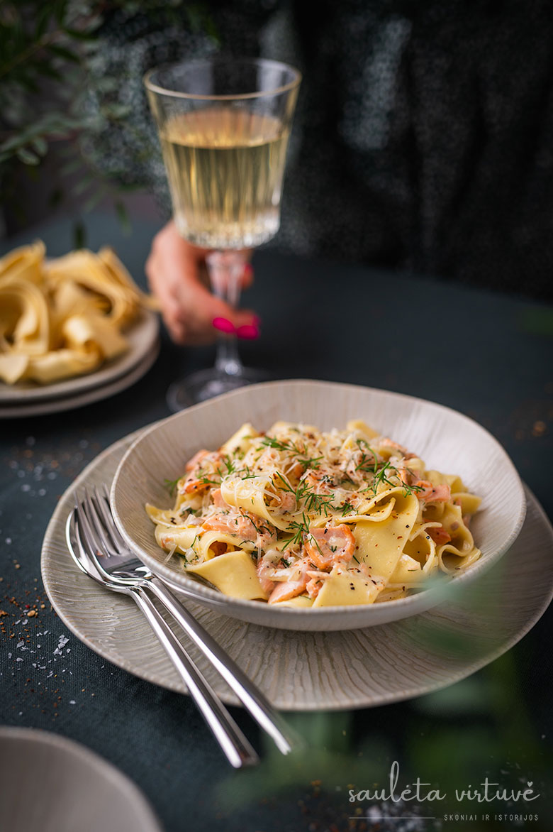Pasta su lašišos ir grietinėlės padažu