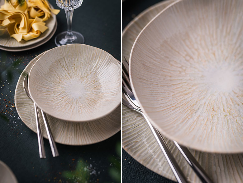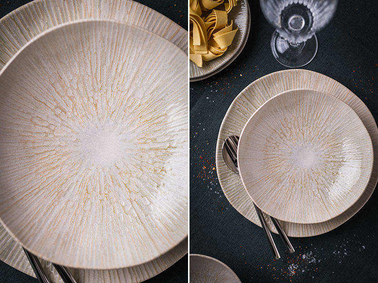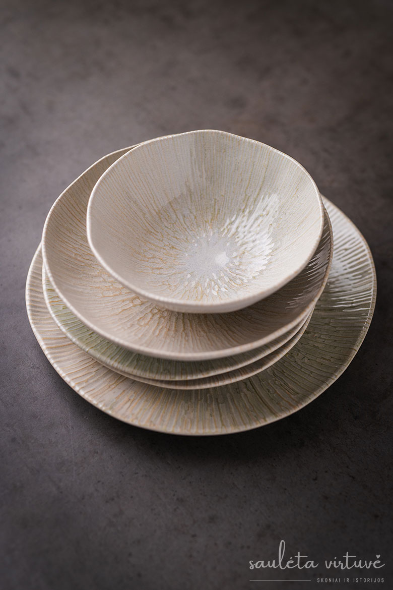 Ši kolekcija – „Anya“ akmens masės lėkštės ir dubenėliai – yra unikali savo forma. Indai maloniai sunkūs, nelygios tekstūros, padengti žvilgia glazūra. Žalsvos, rusvos ir gelsvos spalvos susilieja į dailų raštą – ramų ir švelnų akims, gamtišką. Jaukiems namams ir dar jaukesniems patiekalams.