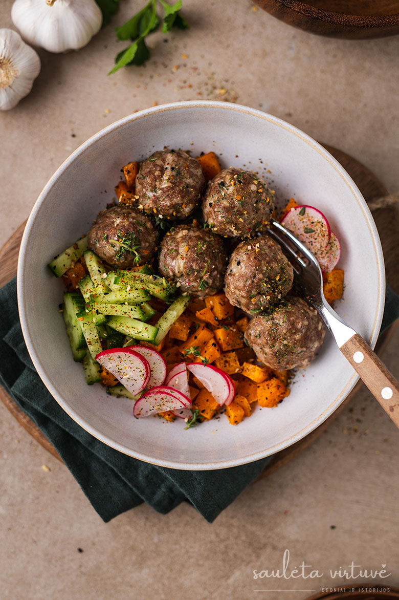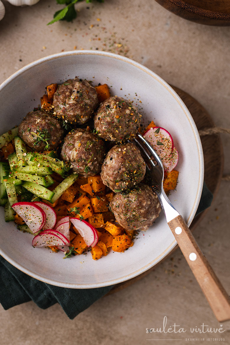 4. Kepkite įkaitintoje orkaitėje apie 15-20 minučių, priklausomai nuo kukuliukų dydžio. Patiekite su keptomis ar šviežiomis daržovėmis, su bulvių koše ar kitu mėgstamu garnyru.