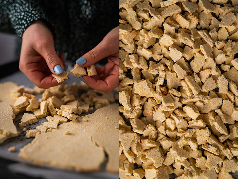 5. Sausainį atvėsinę, sulaužykite nedideliais gabaliukais.
