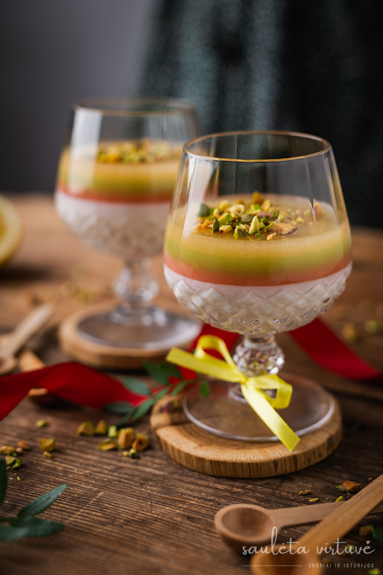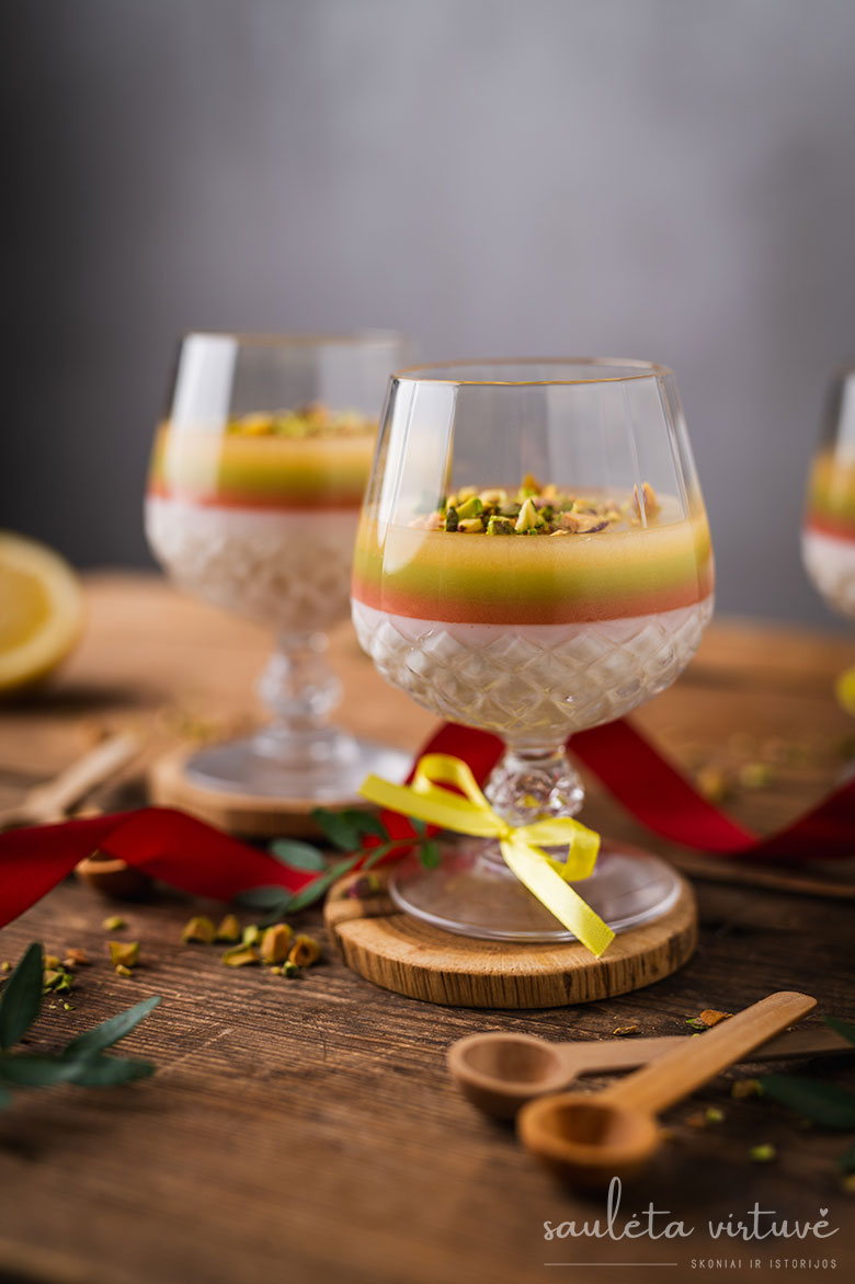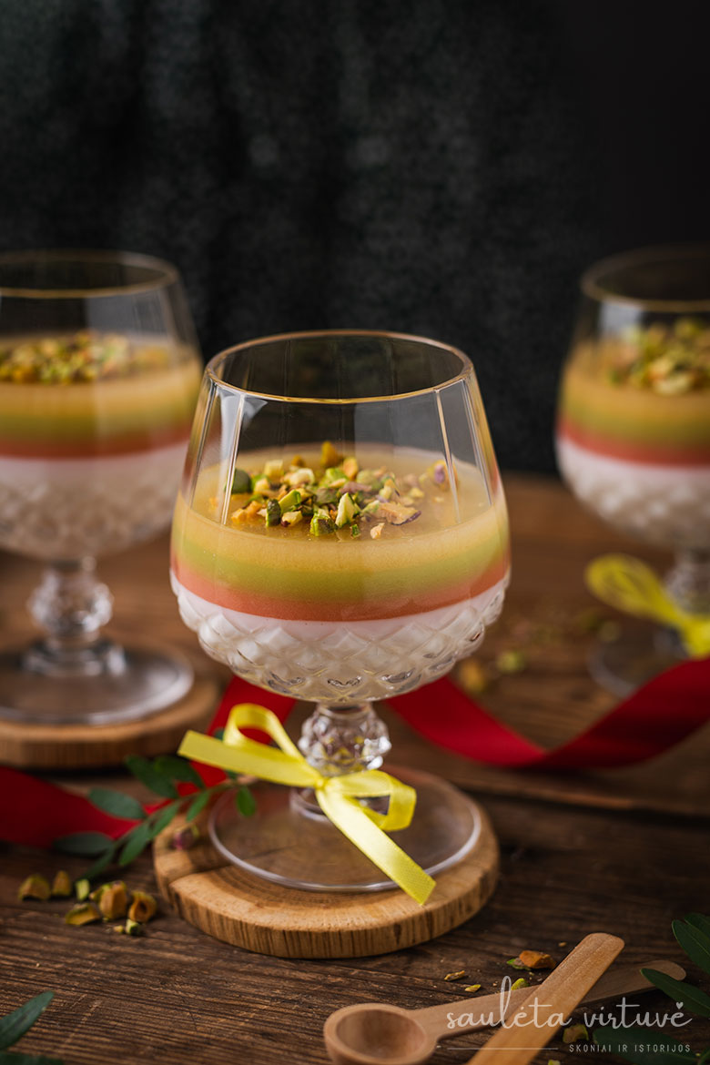 Vanilinė medaus panakota su trispalve želė