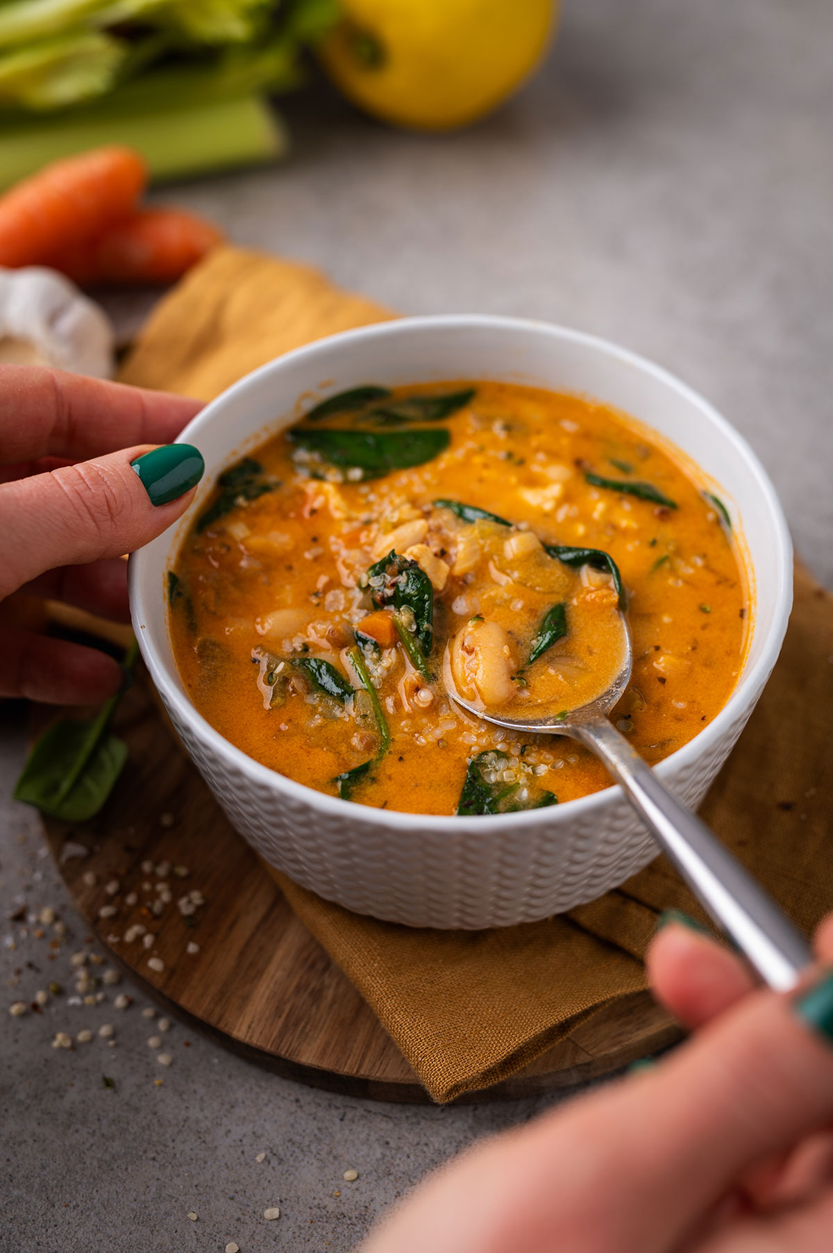 Neprisimenu tokios ilgos, tokios šaltos žiemos. Jei savaitgalį termometro stulpelis tikrai kris žemiau minus dvidešimties, tai jau tikrai pravers dubenėlis šildančios sriubos. Ši – maistinga, gausi baltymų, daržovių, jaukumo ir, žinoma, pilnutėlė gero skonio!