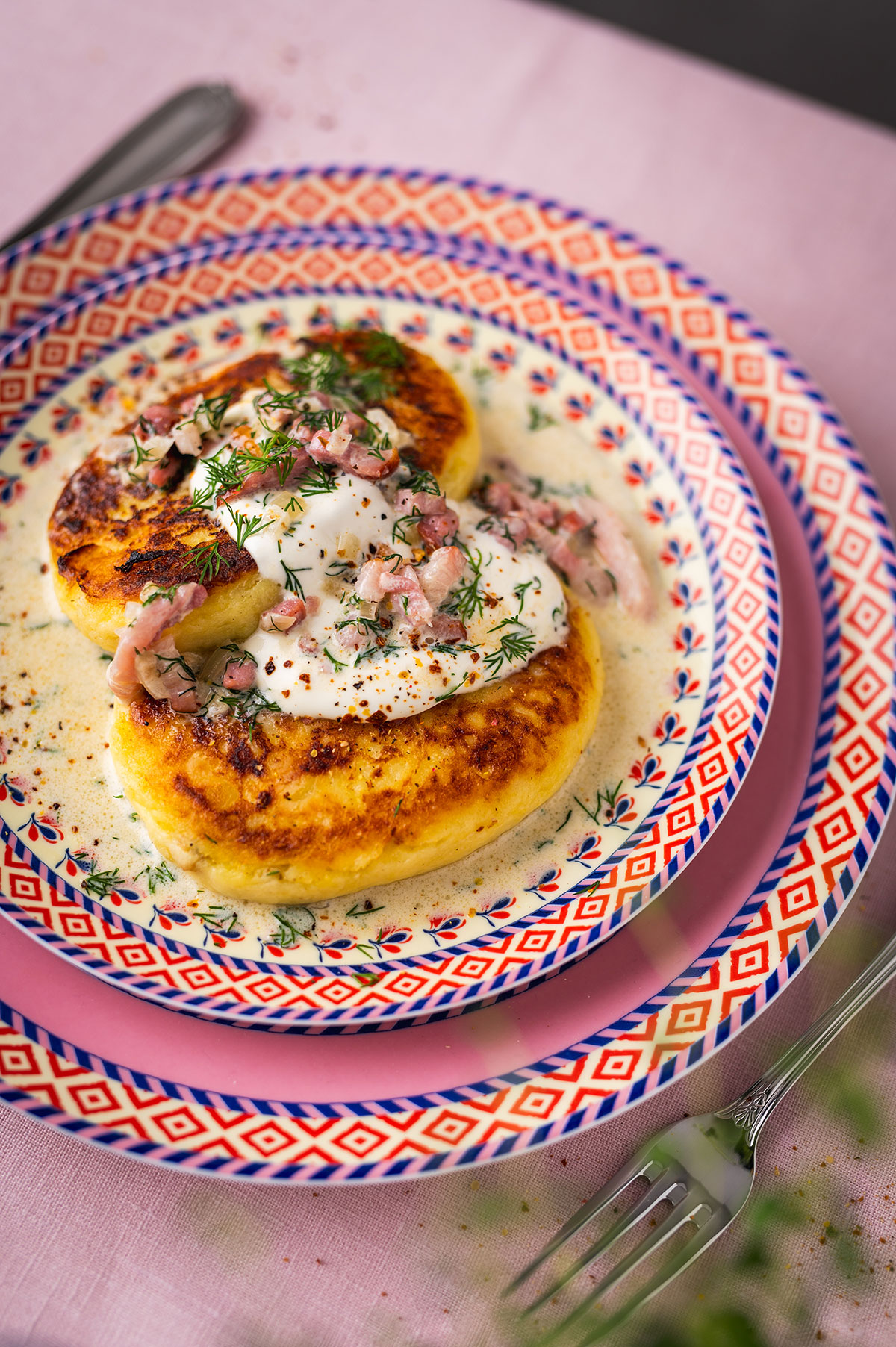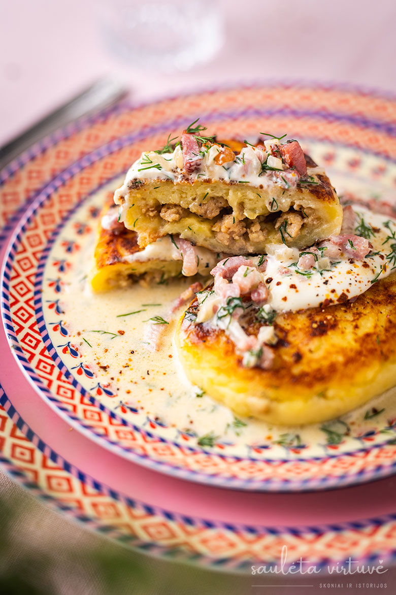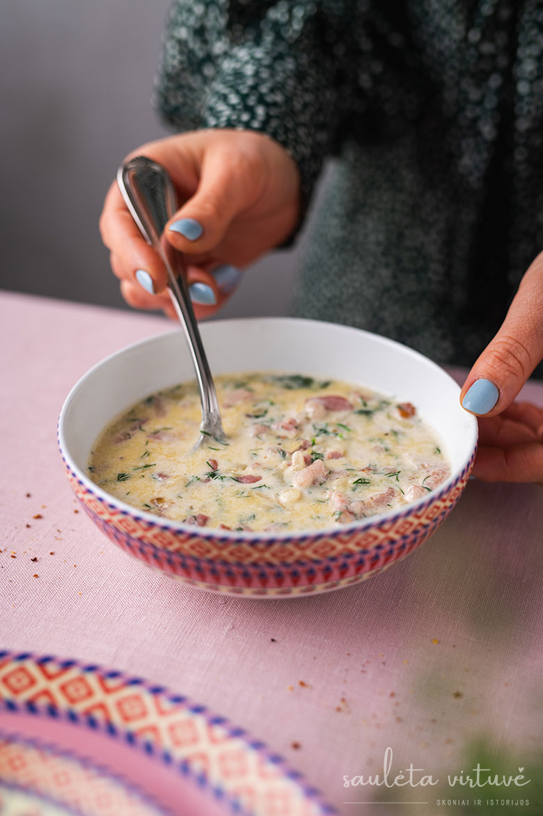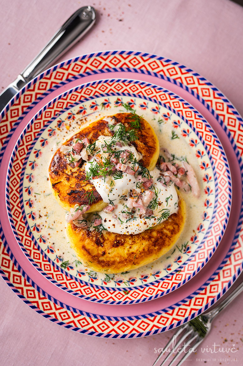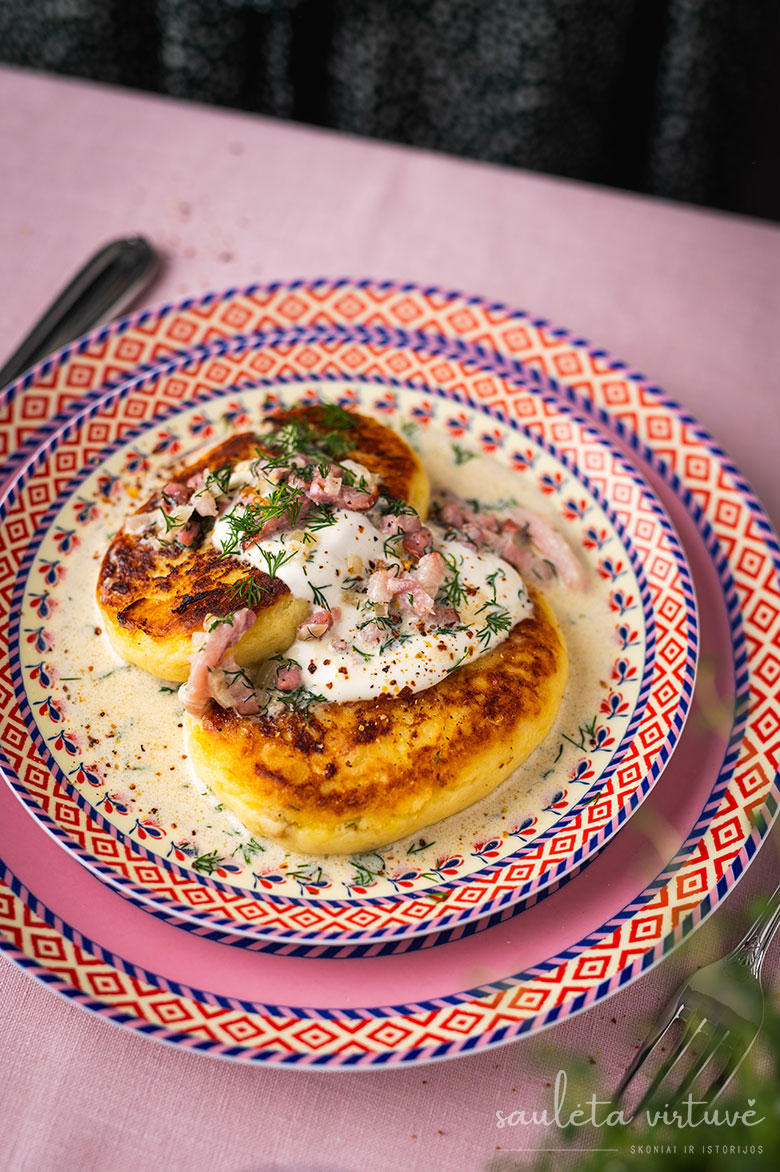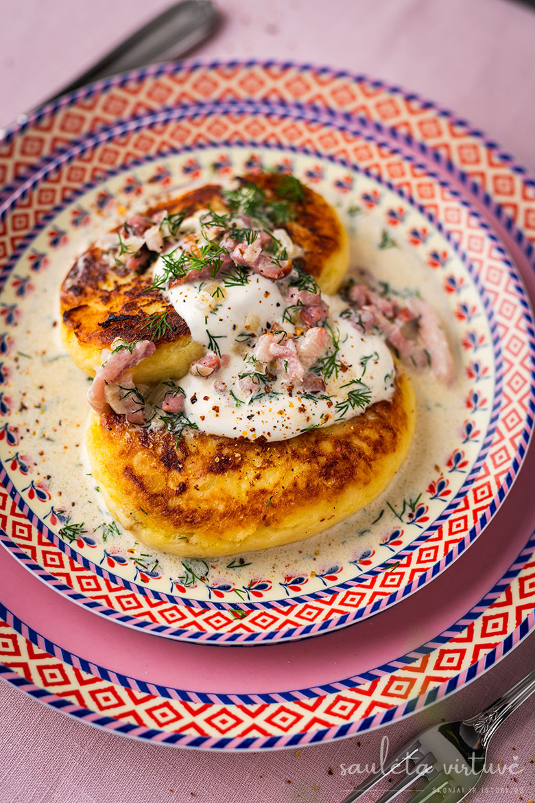 Paskutinis akcentas – grietinėlės, šoninės ir krapų padažas. Negali būti jaukiau, skaniau ir nostalgiškiau!