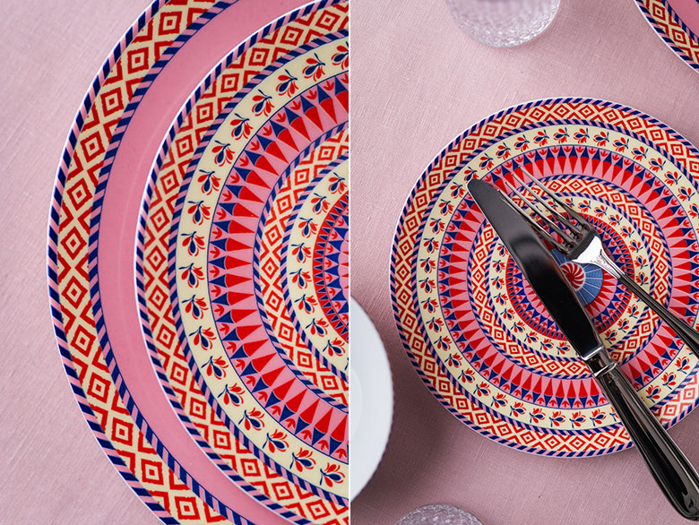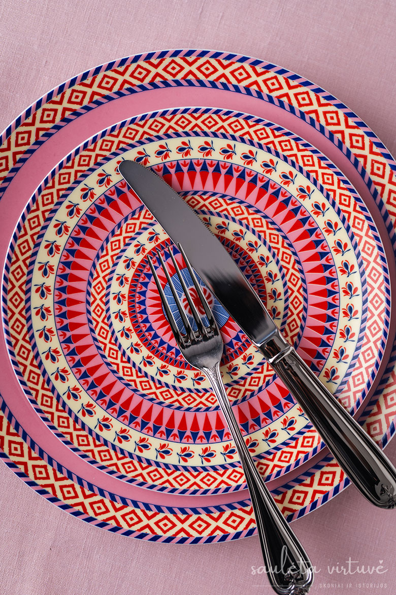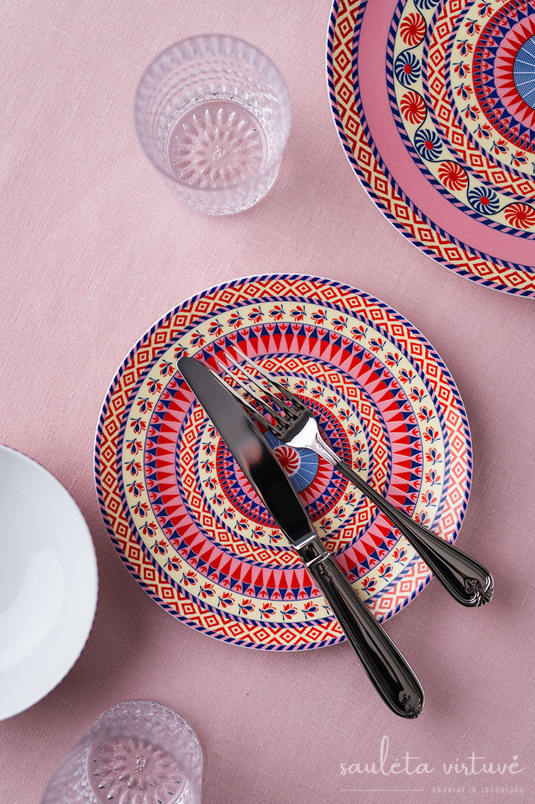 Į kelionę laiku įsukančios lėkštės, kurios tarsi padiktavo šių pietų temą, – iš „PROMO Cash&Carry” naujosios pavasario indų kolekcijos. Ryškios, spalvingos, o apsisukus laiko ratui, ir vėl labai madingos!